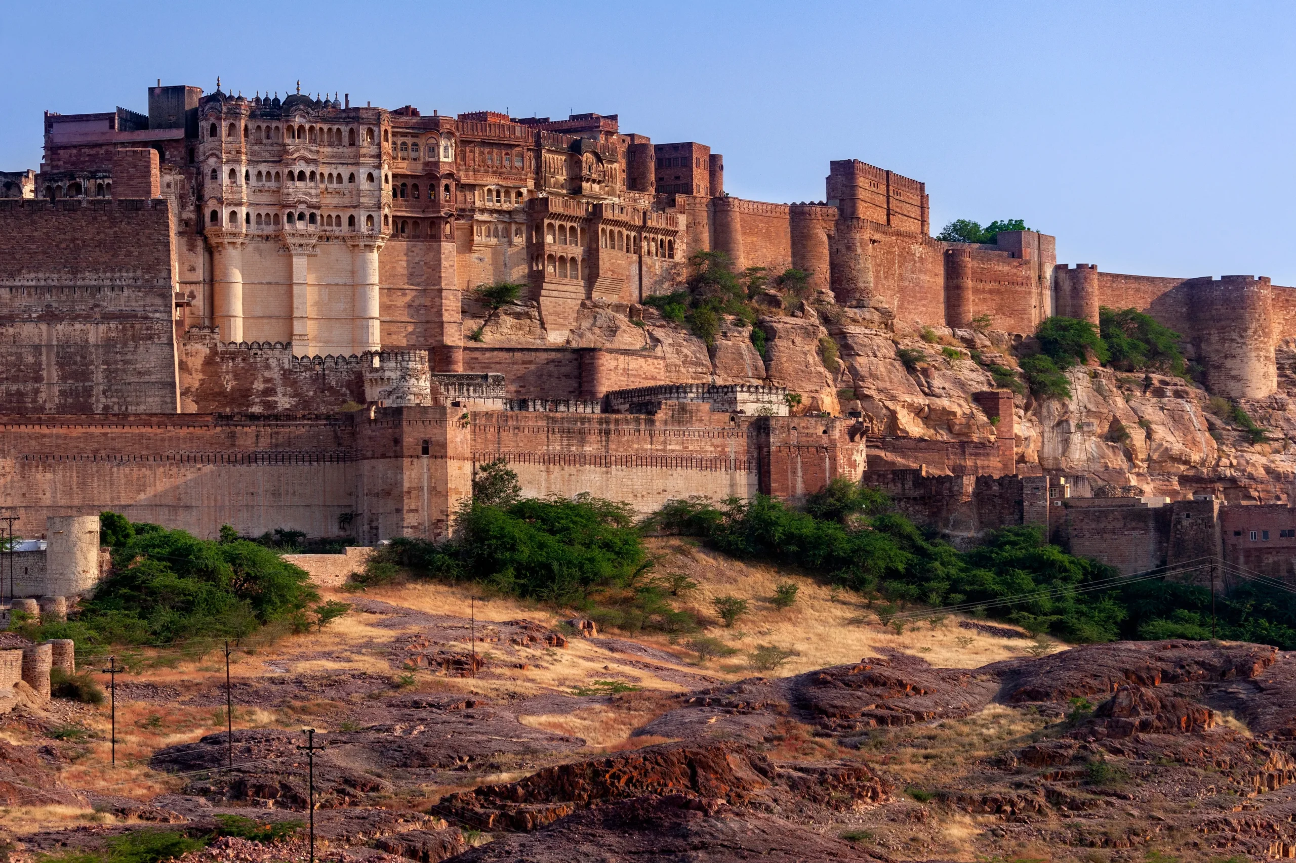 The Hill Forts of Rajasthan is a set of six forts – Chittorgarh, Kumbhalgarh, Ranthambore, Gagron, Amber, and Jaisalmer – and is located in the hilly and rough areas of Rajasthan. For protection against enemies, hills were used to site the forts, and the Royal military Forethought planned the layout. The unique design of each fort demonstrates different methods of construction, engineering, and military strategy of the time. The forts also served other purposes, including the administration of the region and the culture of the people. The Kumbhalgarh Fort is the most famous of these, as it has the second-longest wall in the world, the first being the Great Wall of China.